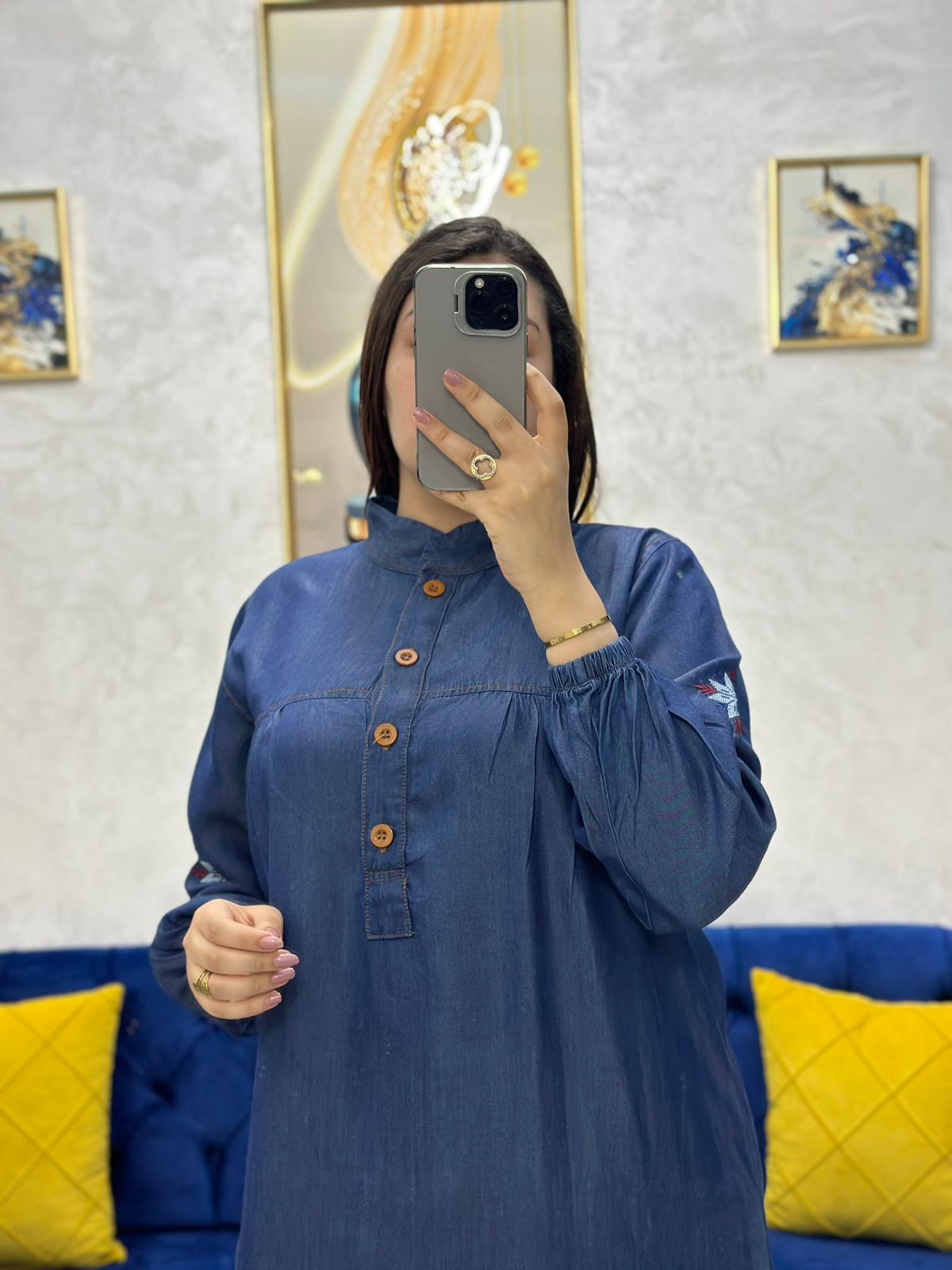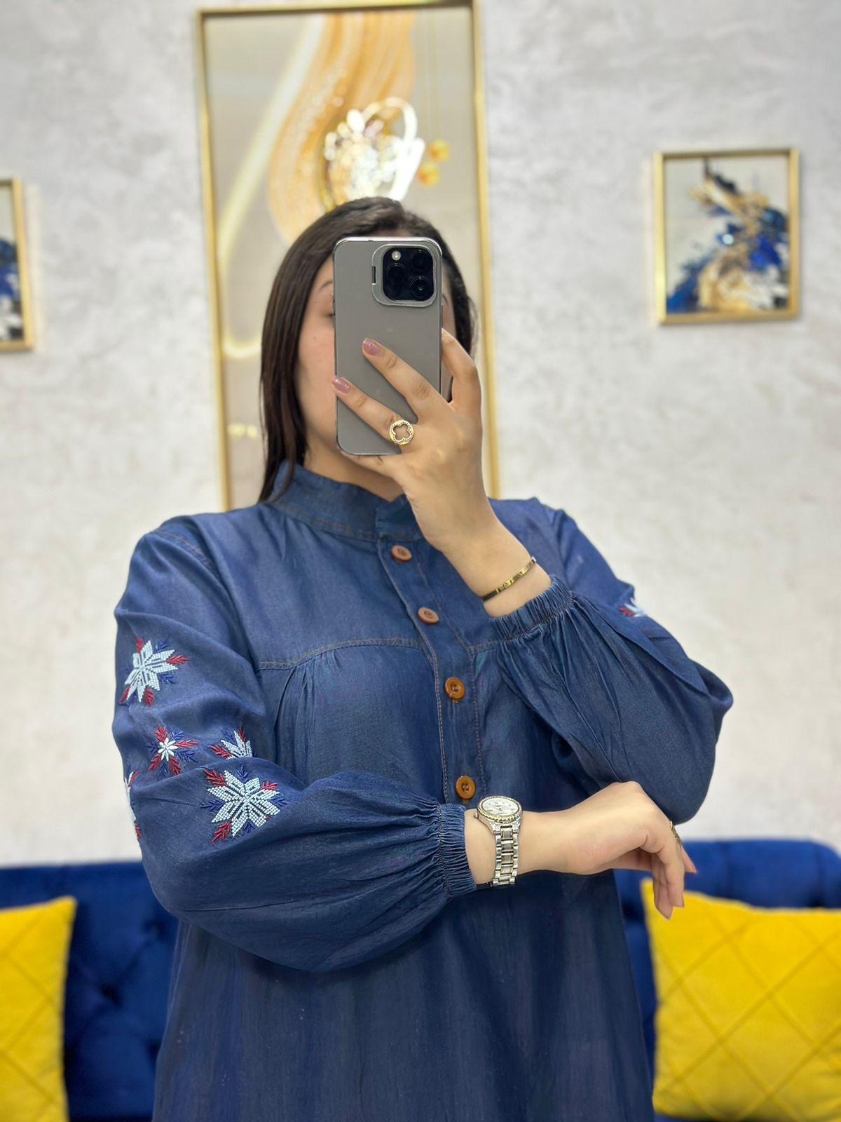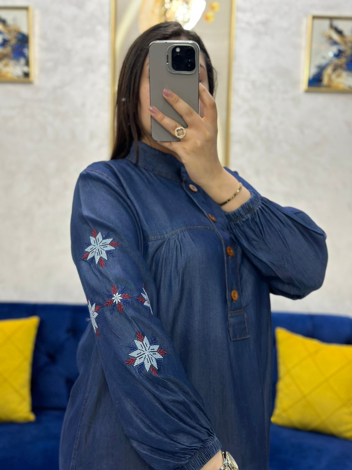 🔹 تطريز ناعم فالأكمام بلمسة فنية راقية